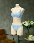 Каркасний бюстгальтер з еластичної сітки, чашки з виточкою та декоративними деталями, зʼєднаними кільцем;Трусики бразиліана з сітки з декоративними деталями та кільцем попереду.