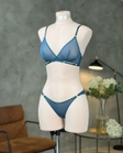 Безкаркасний бюстгальтер з еластичної сітки кожна чашка з'єднується з поясом з протилежного боку та трусики бразиліана.