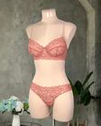 - Каркасний бюстгальтер з еластичного мережива, з Т-швом, чашка подвійна, дубльована нееластичною сіткою;- Класичні трусики «бразиліана» з еластичного мережива.